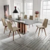 Der Stuhl Muralto ist in verschiedenen Gestellvarianten erhältlich. Ausserdem in veschiedenen Stoff- und Lederbezügen lieferbar.